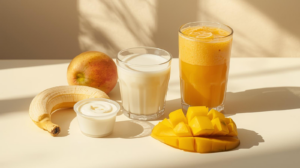 ผลไม้สุก เช่น กล้วย มะม่วง น้ำผลไม้ปั่น